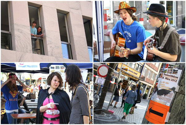 Ab 13 Uhr hatten wir noch zusätzlich einen Stand am Hafenmarkt, wo die Mitarbeiter den Eltern und Kindern Rede und Antwort auf all ihre Fragen standen. Um den Stand attraktiver zu machen, gab es eine Bonbonschleuder und Gitarrenmusik. Außerdem wurden Kaffeegutscheine verteilt, die man beim Besuch im Kilianshaus einlösen konnte.